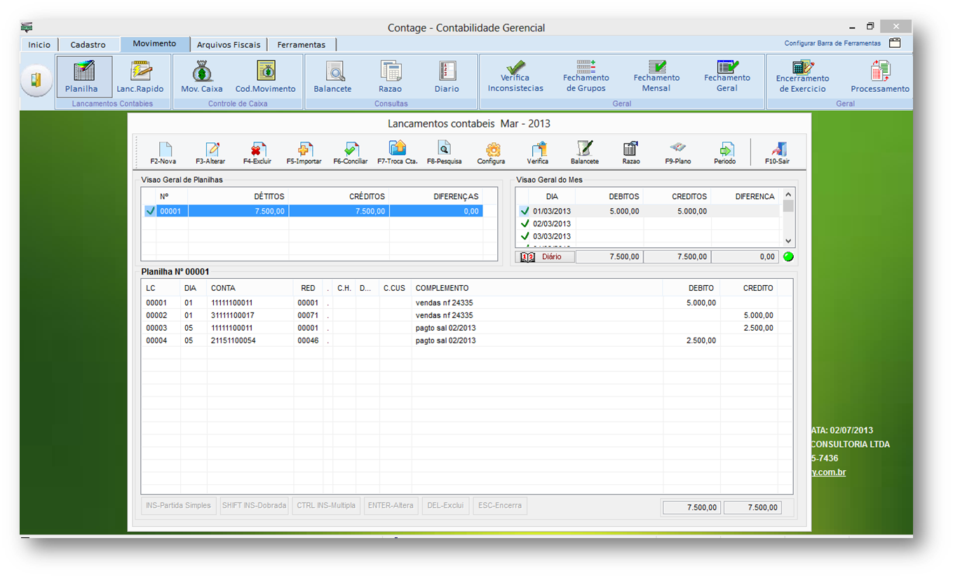 Movimento (Planilhas, Caixa, etc )